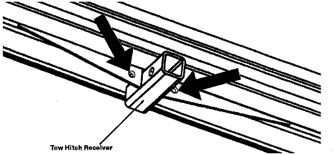 The purpose of this bulletin is to clarify the installation instructions for the Rear Step/Receiver Hitch for the 1997 RAV4. The locations of the Trailer Safety Chain attachment holes are indicated by the red arrows in the illustration.