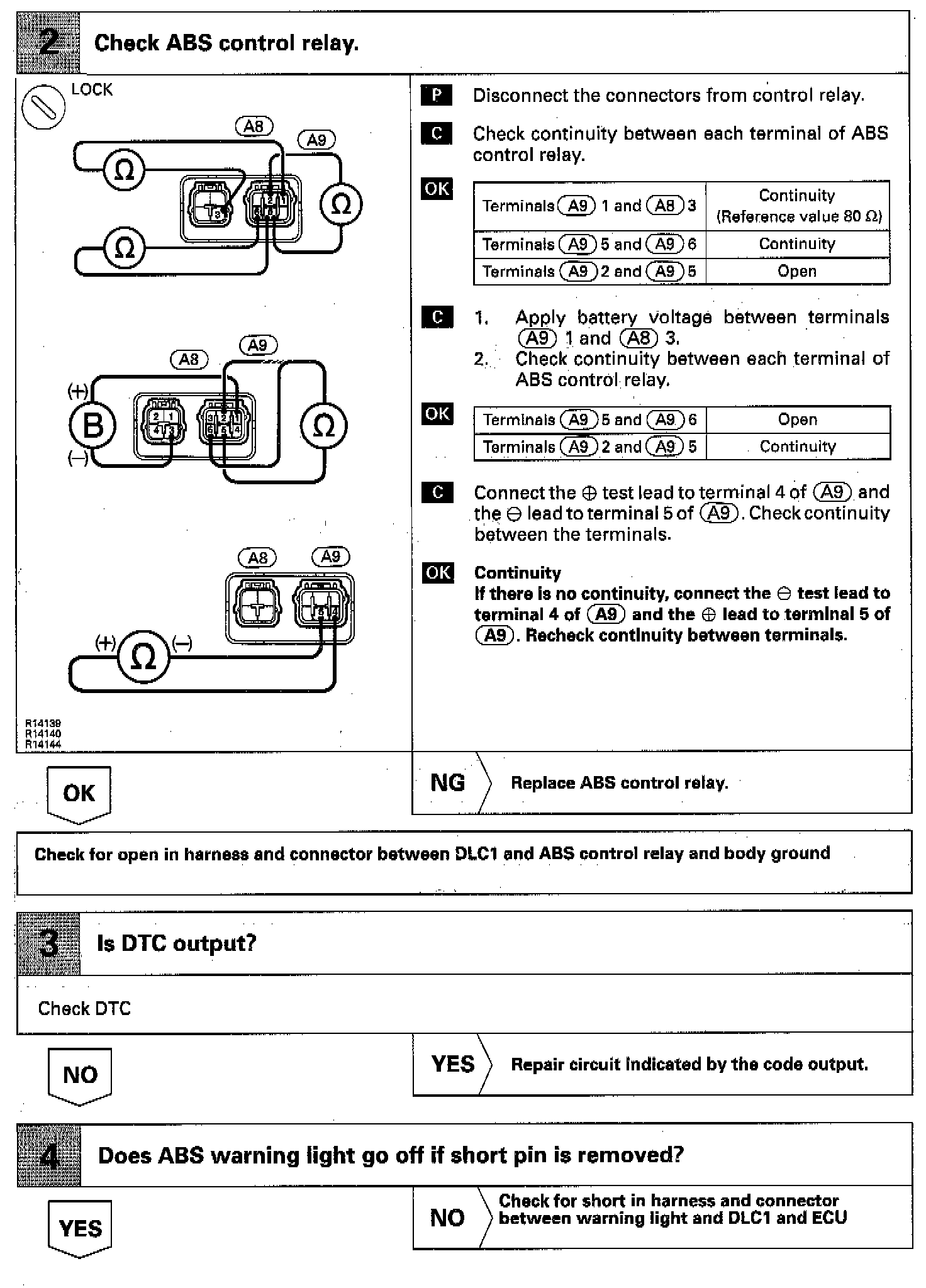 After removing the short pin of the Data Link Connector (DLC)1, connect terminals Tc and E1 of the DLC1 to make the ABS Warning Light blink and output the DTC.