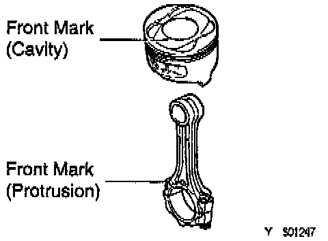 (d) Align the front marks of the piston and connecting rod, and push in the piston pin with your thumb.