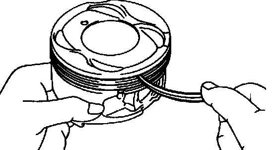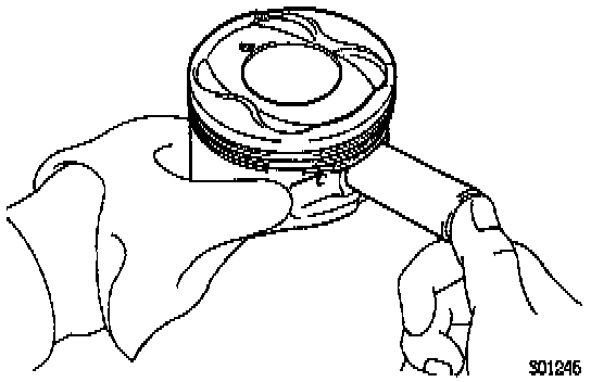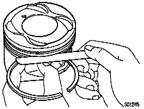If the end gap is greater than maximum, replace the piston ring. If the end gap is greater than maximum, even with a new piston ring, rebore all the 4 cylinders or replace the cylinder block.