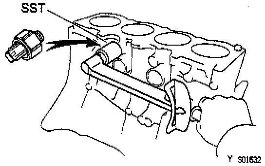 Using Special Service Tool (SST) Oil Pressure Switch Socket # 09816 - 30010 or equivalent, install the knock sensor.