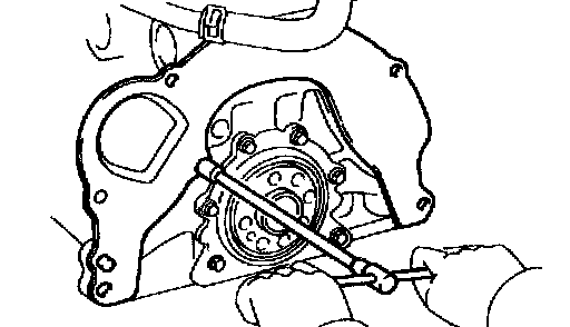10. Remove generator drive belt adjusting bar, water pump and water pump cover assembly.
