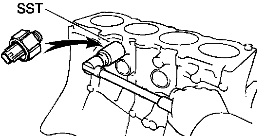 Using Special Service Tool (SST) Oil Pressure Switch Socket # 09816 - 30010 or equivalent, remove the knock sensor.