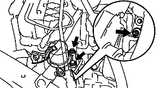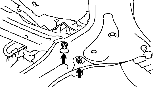 (h) Tighten the 2 nuts holding the front suspension crossmember, engine mounting center member to the rear engine mounting insulator.