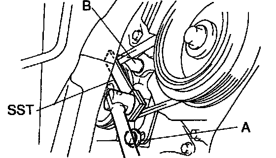 (d) Using Special Service Tool (SST) Torque Wrench Adaptor # 09249 - 63010 or equivalent and a deep socket wrench, tighten the bolt B.
