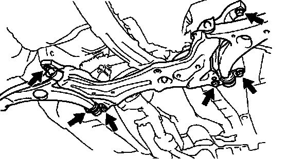 (f) Tighten the 6 bolts holding the front suspension crossmember to the body.