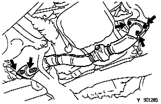 (c) Temporarily install the 2 bolts holding the front exhaust pipe to the TWC w/ pipe.