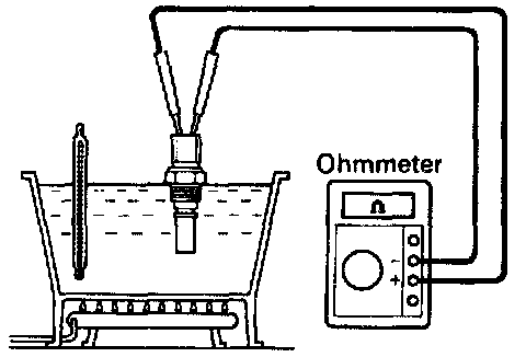 a. Using an ohmmeter. check that there is no continuity between the terminals when the coolant temperature is above 93 °C (199 °F).