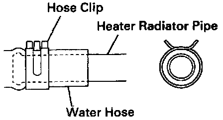 INSTALLATION HINT: Push the water hose as far as the possible onto the heater radiator pipe and install the hose clip.