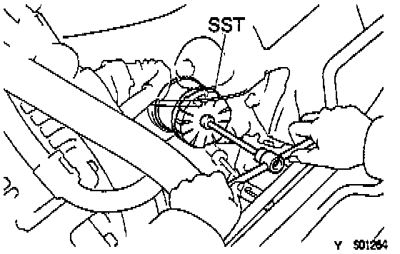(a) Using Special Service Tool (SST) Oil Filter Wrench # 09228 - 06501 or equivalent, remove the oil filter.