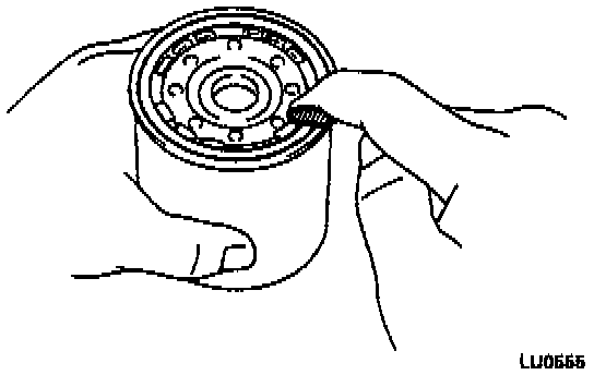 (d) Lightly tighten the oil filter by hand until the rubber gasket contacts the seat of the filter mounting.