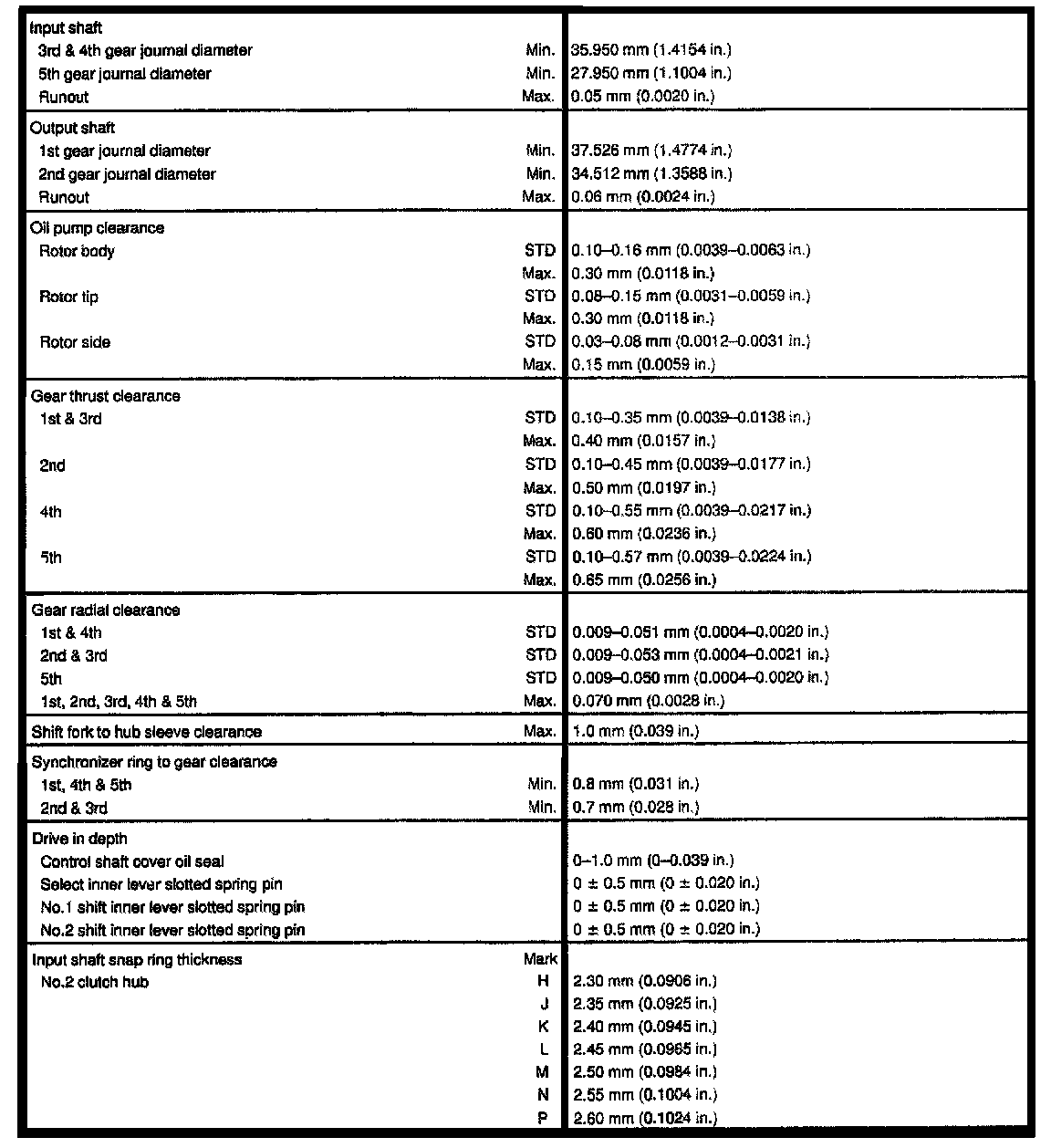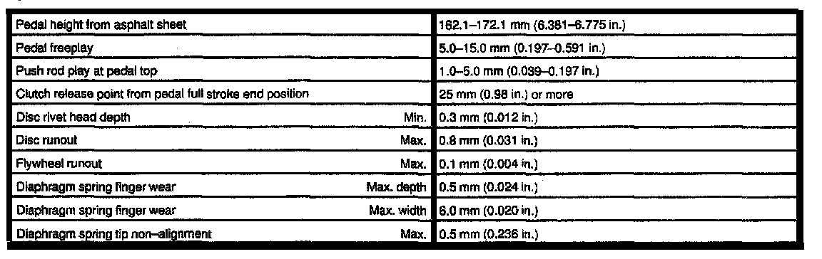5-spd M/T, Clutch Clearances: