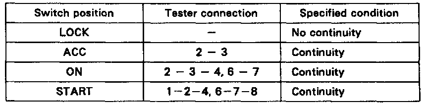 If continuity is not as specified, replace the switch.