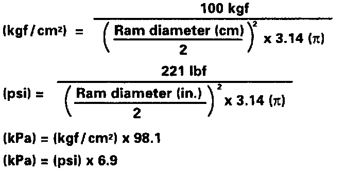 NOTE: Check the diameter of the hand press ram. Then calculate the gauge pressure of the press when 981 N (100 kg, 221 lb) of force is applied.