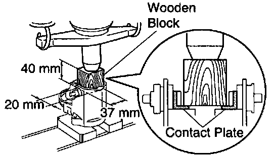 a. Put a wooden block on the contact plate and press it down with a hand press.