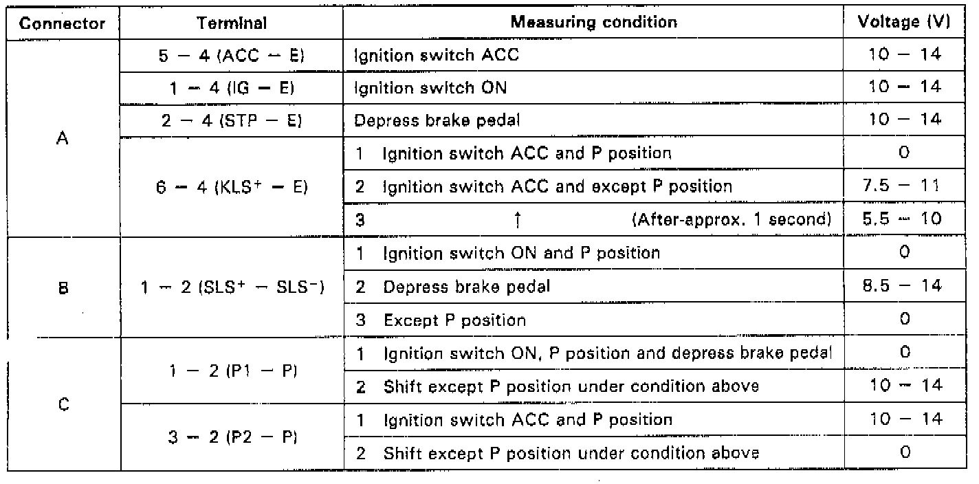 4. Inspect shift lock control switch.
