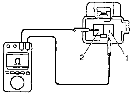 b. Using an ohmmeter, measure the resistance between the terminals.