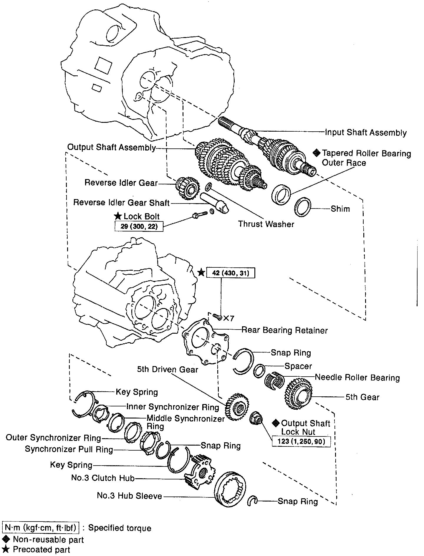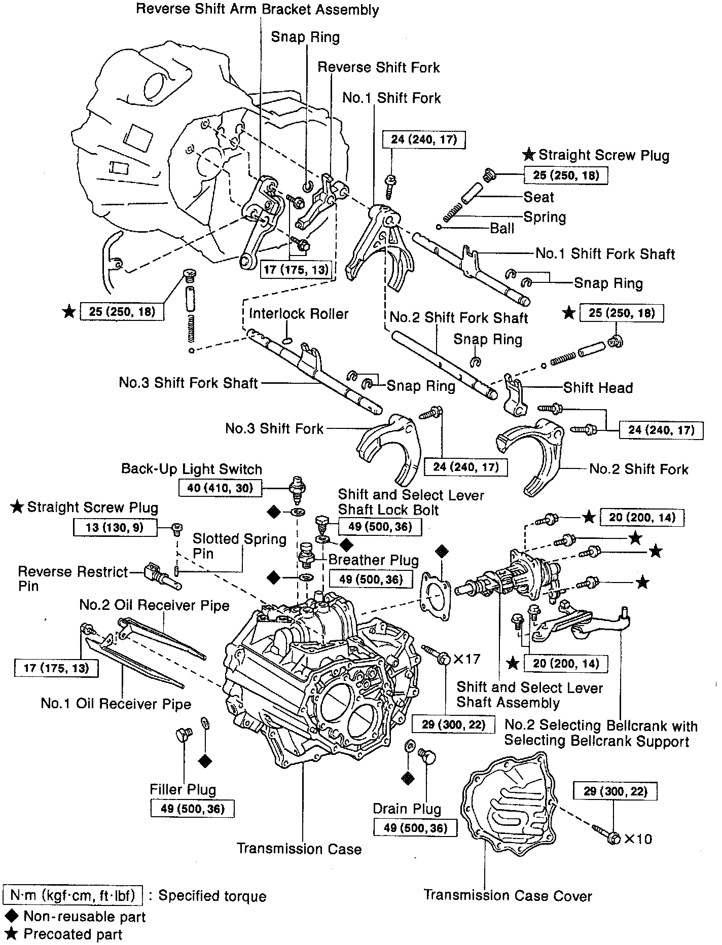 INSTALLATION HINT: When it is difficult to push the fork shaft through the reverse shift fork, pull up the No.3 shift fork shaft.
