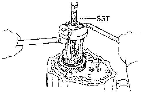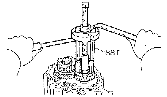 b. Using Special Service Tool (SST) 09950 - 30010 or equivalent, remove the No.3 clutch hub with the synchronizer ring and 5th gear.