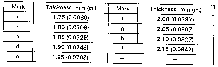 Standard clearance: 0.10-0.57 mm (0.0039 - 0.0224 in.)