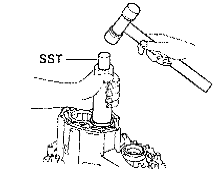 Using SST 09316 - 60011 (09316 - 00011) and a hammer, remove the output shaft rear taper roller bearing outer race.