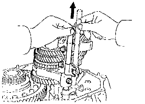 Pull up the No.3 shift fork shaft, remove the No.1 shift fork shaft.