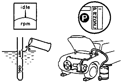 (e) With the engine idling, check the fluid level. Add fluid up to the COOL level on the dipstick.