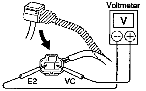 (c) Using a voltmeter measure the voltage between connector terminals VC and E2 of the wiring harness side.