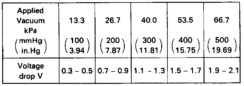 (d) Apply vacuum to the MAP sensor in 13.3 kPa (100 mm Hg, 3.94 in.Hg) segments to 66.7 kPa (500 mmHg, 19.69 in.Hg).