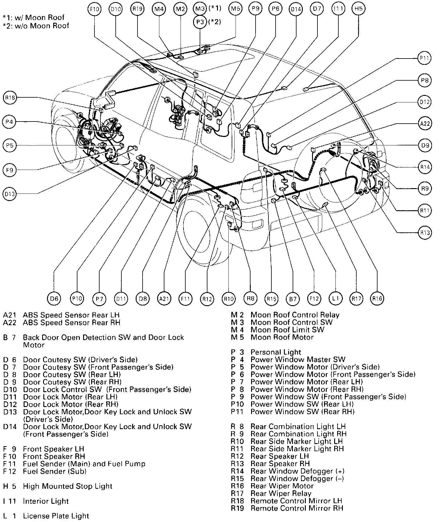 D14 Door Lock Motor, Door Key Lock and Unlock SW (Front Passenger's Side)