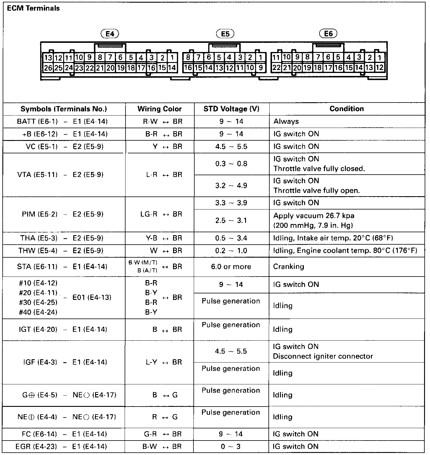 Standard Values Of ECM Terminals Chart 2 Of 2:
