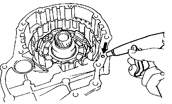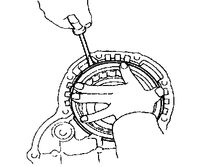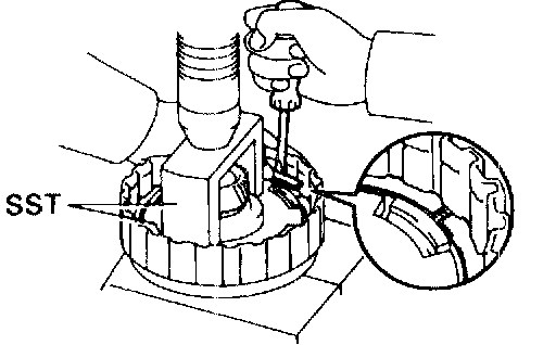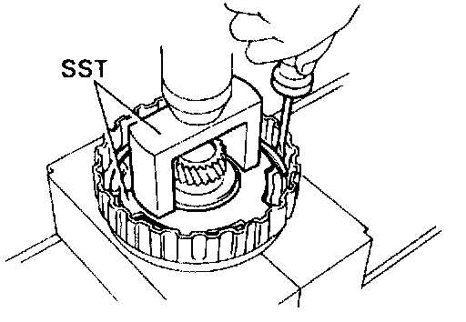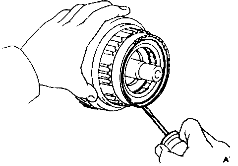 c. Install the snap ring with a screwdriver. Be sure end gap of snap ring is aligned with the groove of the clutch drum.