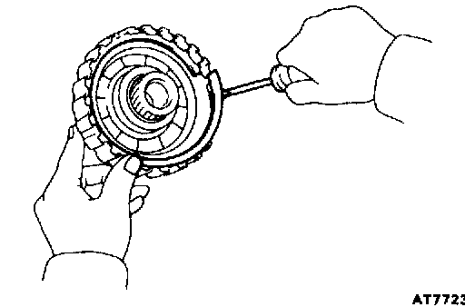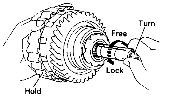 b. Hold the O/D direct clutch and turn the intermediate shaft. The shaft should turn freely clockwise and should lock counterclockwise.
