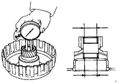 Using a dial indicator, measure the inside diameter of the 2 direct clutch bushings.