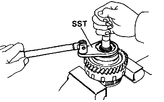 a. Hold the O/D planetary gear in a vise with soft jaws.