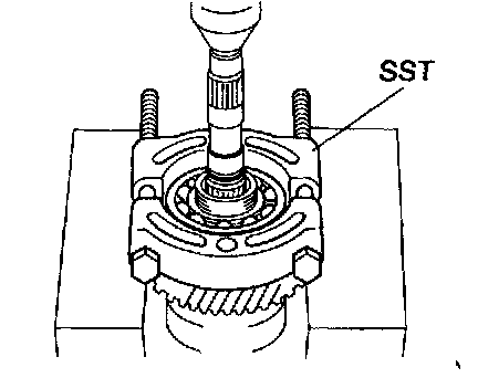 a. Using SST and a press, press out the bearing.