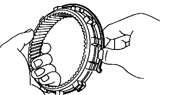 Be sure the end gap of the snap ring is not aligned with one of the cutouts.