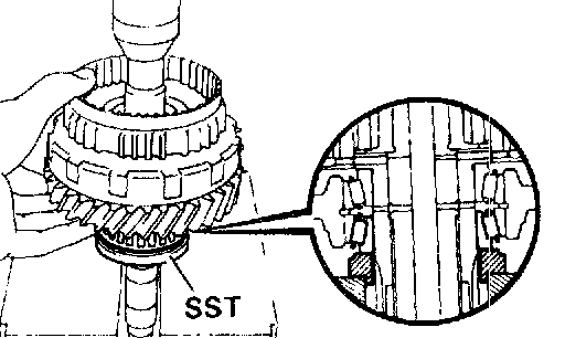 5. INSTALL 0/D PLANETARY GEAR ONTO OVER DRIVE DIRECT CLUTCH