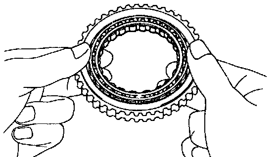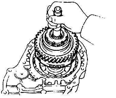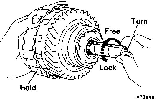 b. Hold the overdrive direct clutch and turn the intermediate shaft. The shaft should turn freely clockwise and should lock counterclockwise.
