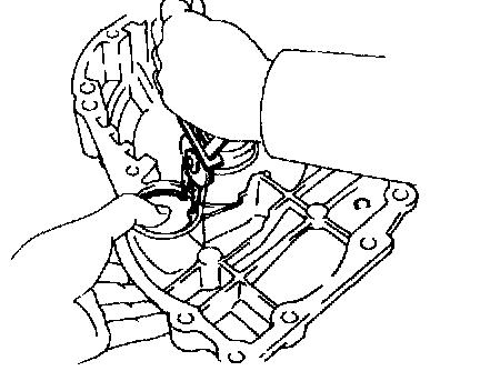 Install the 2 oil seal rings to the O/D case groove, then snug them down by squeezing their ends together.