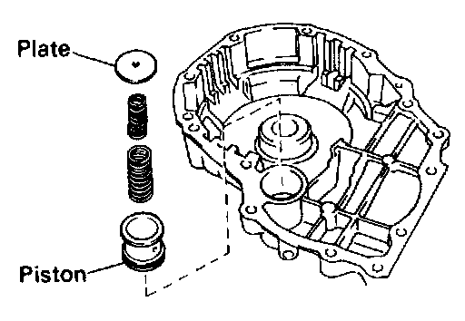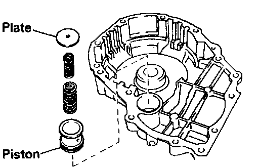 c. Install the accumulator piston, 2 springs and retaining plate.