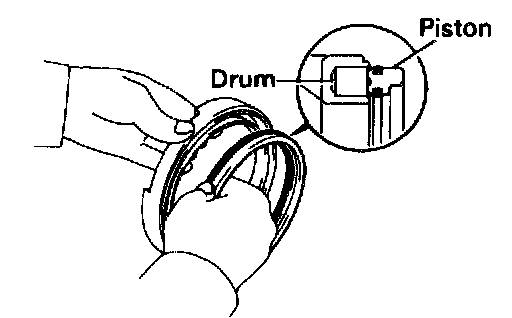 c. Press the piston into the drum, being careful not to damage the 0-rings.