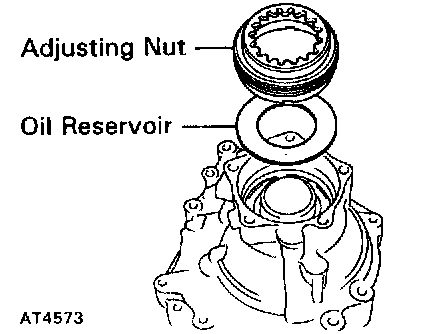 b. Install the bearing adjusting nut and oil reservoir, until it touches the outer race.