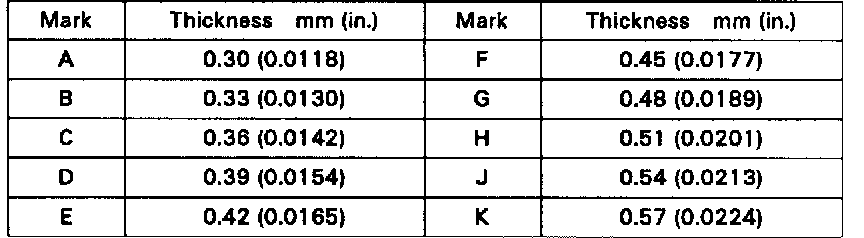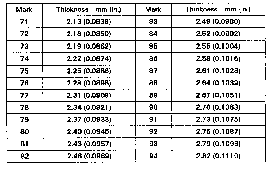 e. Referring to the table, select the plate washer which will ensure that the backlash is within specification. Try to select a washer of the same size as the removed washer.