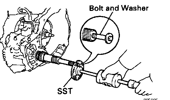 a. Screw in a suitable bolt with washer into the side gear intermediate shaft.