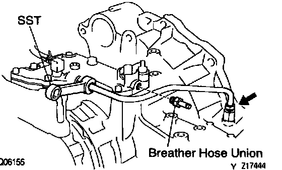a. Remove the breather hose from driven pinion bearing cage and transaxle case upper cover.