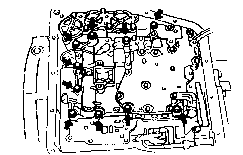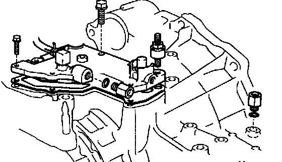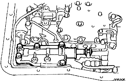 b. Remove the 5 bolts and manual valve body with the manual valve.