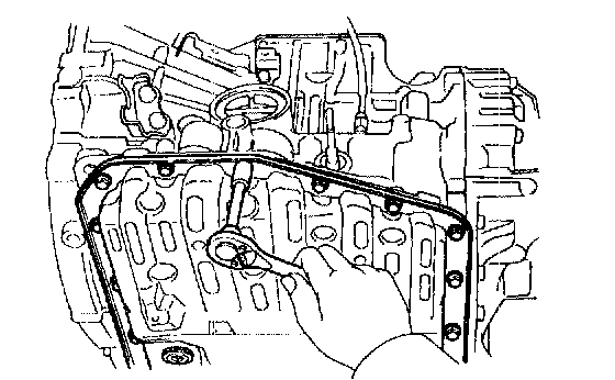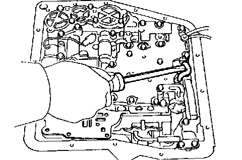 NOTICE: Do not turn the transaxle over as this will contaminate the valve body with the foreign materials in the bottom of the oil pan.
