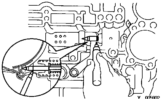 a. Push the pin with a small screwdriver and remove it from the bolt hole of the oil pump mounting.