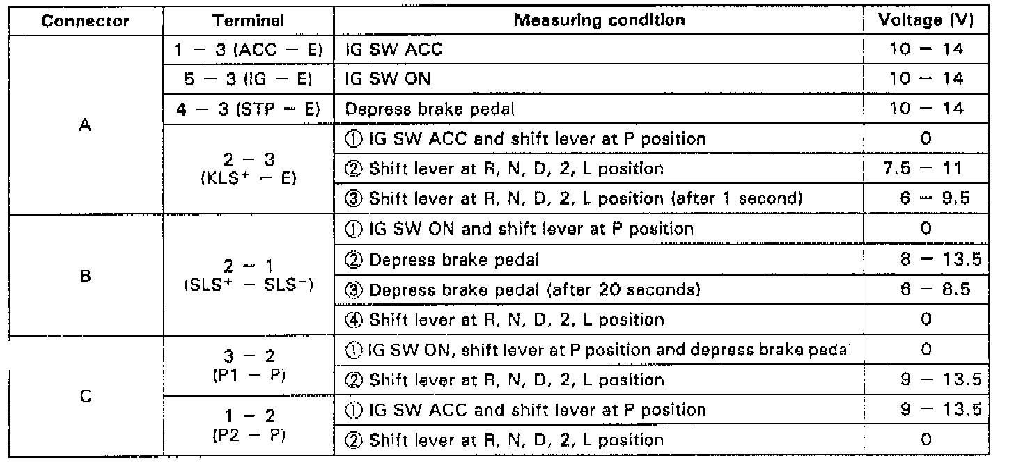 4. Inspect shift lock control switch.